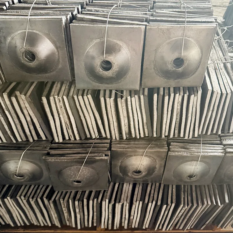 Конструктивные преимущества: Изогнутая конструкция распределяет давление, обеспечивая на 30–50 % более высокую несущую способность по сравнению с плоскими лотками. Подходит для дорог с высокой нагрузкой. Типовые характеристики: 150 × 150 × 10 мм (квадратный) или φ150 мм (круглый), с диаметром центрального отверстия на 2–4 мм больше диаметра анкерного стержня.